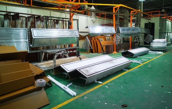 德國進口的全長250米的全自動噴涂生產線,以及木紋轉印車間。