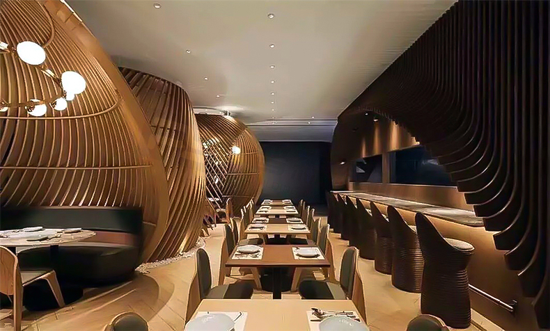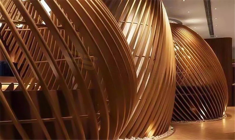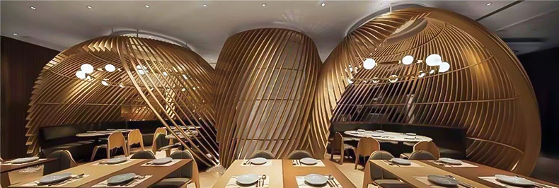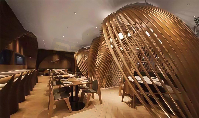 高檔餐廳弧形鋁方通裝飾