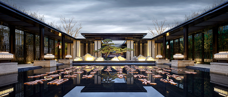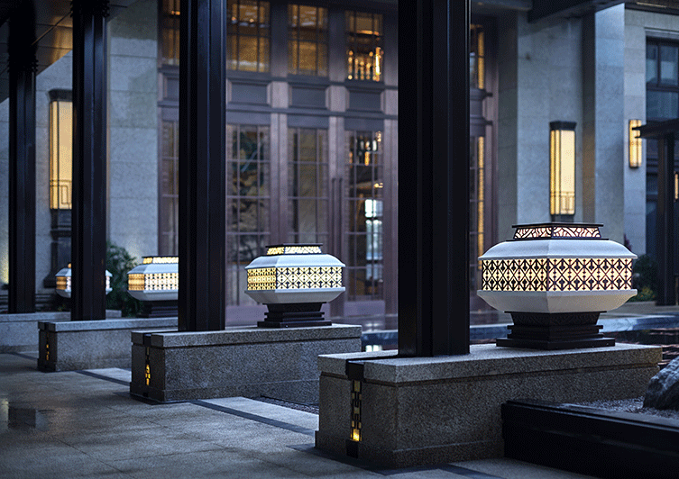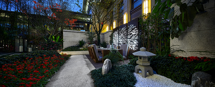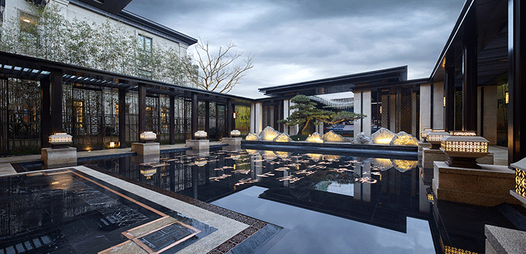設計上皆選取厚重、尊奢的中式元素裝飾雕琢,用精雕細做的方法將傳統的材質做得精美細致。通過鏡面水景與特色植物營造度假酒店式入口形象,營造王宮貴族花園生活的第一印象,重現傳統官邸的榮奢生活,將大氣稟然的氛圍發揮到極致,歸家的心情也因此美好自豪。