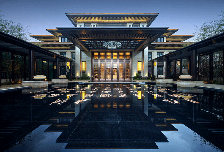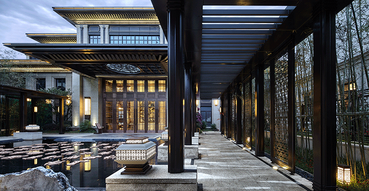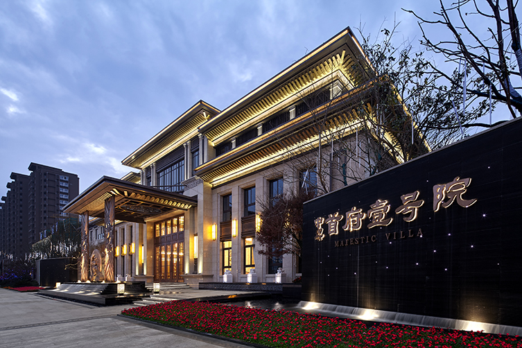 項目位于浙江省溫州市,地理位置優越、交通發達,在傳統中式建筑精髓與現代科技的融匯下,將“王府中式”的莊重、大氣表現得淋漓 精致,在總體布局上亦追求“王府”的軸線感和儀式感,豐富的景觀資源,讓人仿佛置身于王府后花園,建筑與景融匯在一起。