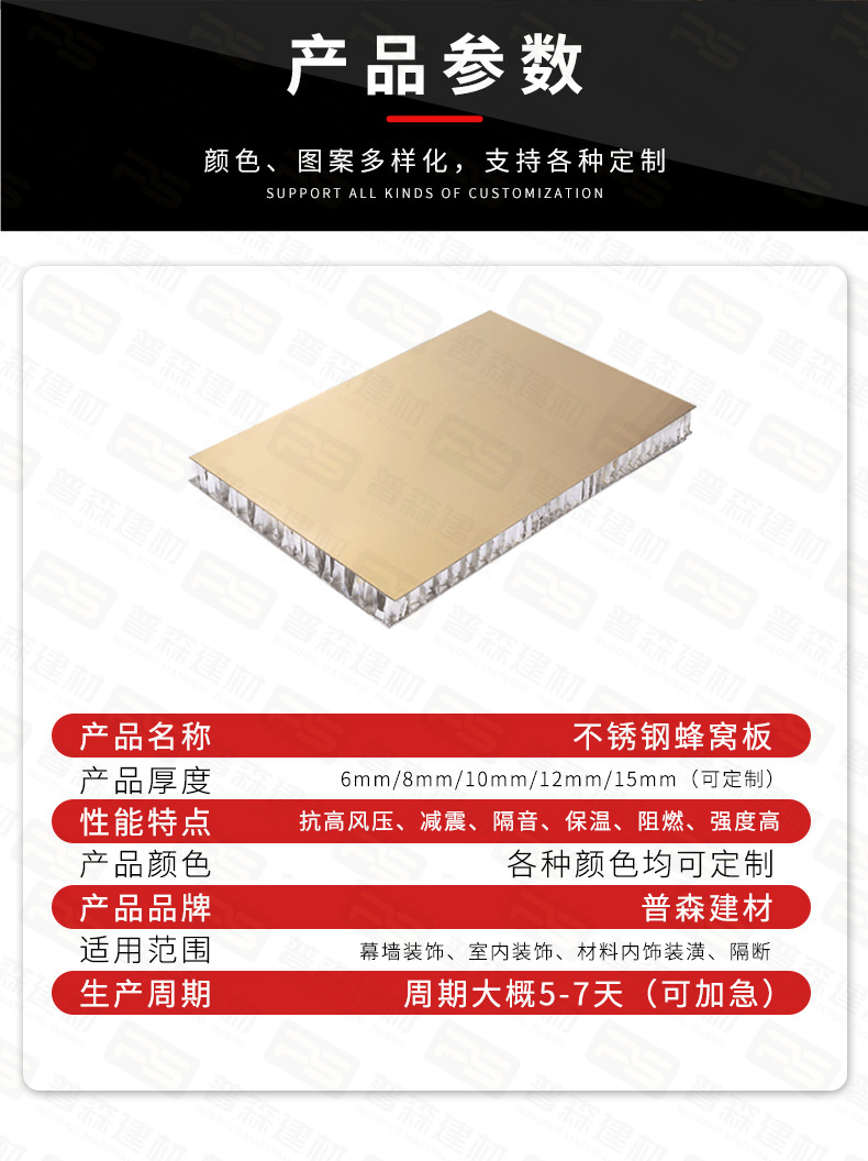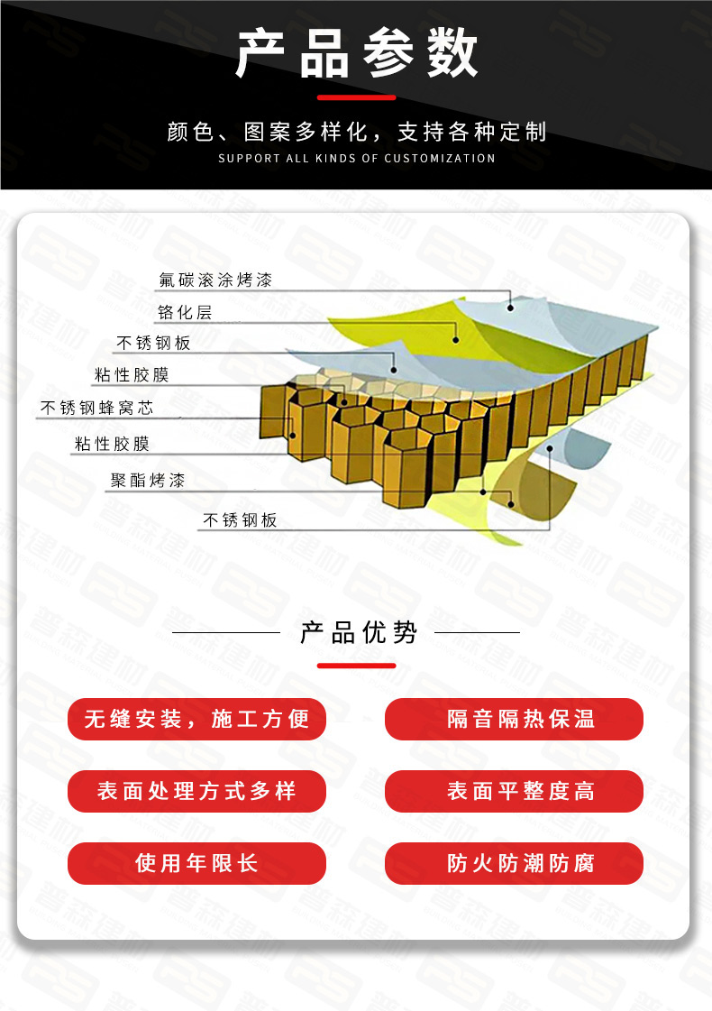產品結構:不銹鋼板+鋁蜂窩芯+鍍鋅底板(鋁板)