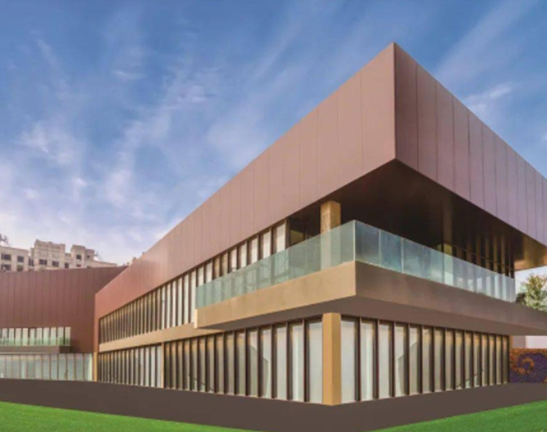 鋁蜂窩板裝飾面板的材質(zhì)一般選用3003、5005等牌號,合金成份低的1100板材較少采用。裝飾面采用噴涂或輥涂形式,涂層為聚酯或氟碳漆,外墻板最好選用噴涂板,并且要求三涂以上,漆層厚度≥40μm,這樣才能保證涂層的耐久性。